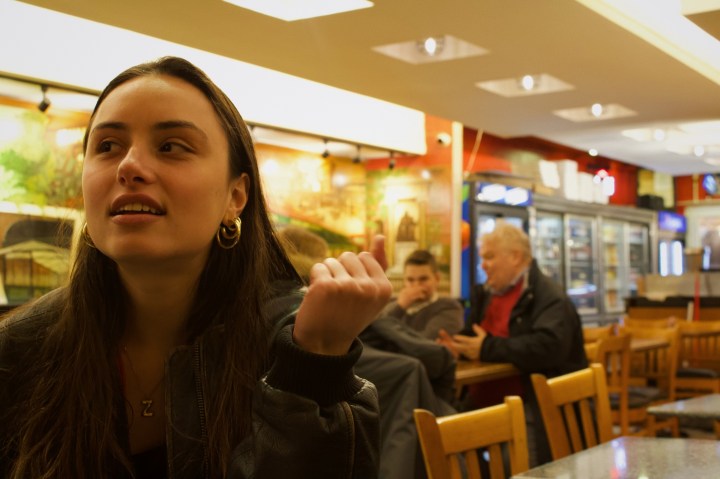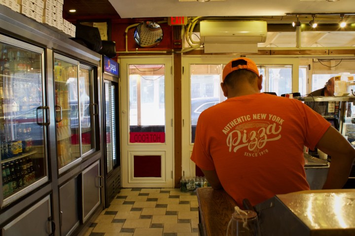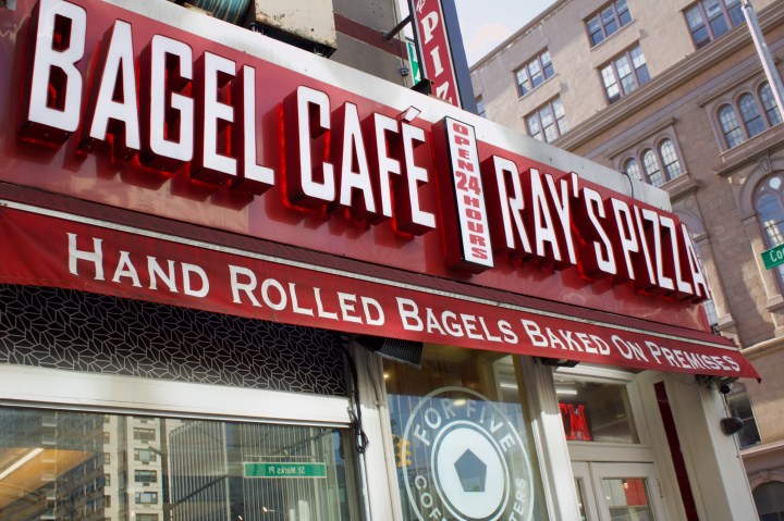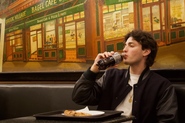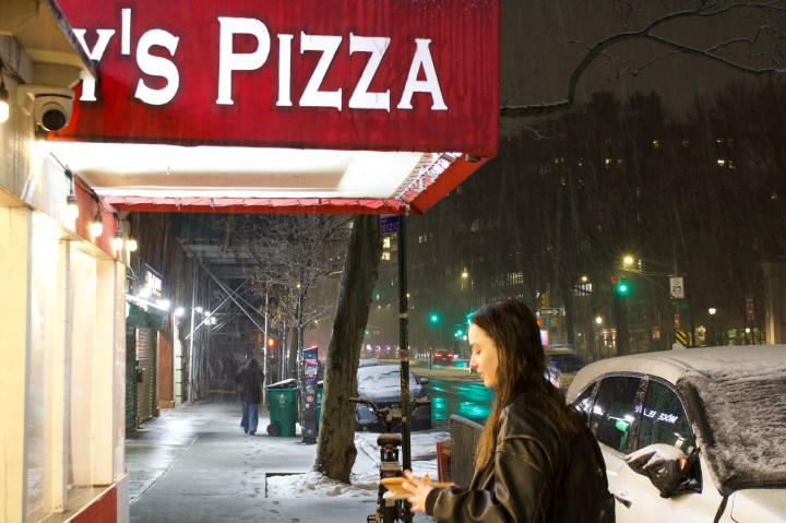 Ray’s Pizza and Bagel Cafe on a sunny afternoon in the East Village, February 10, 2025. Credit: Devyn NovikoffTwo workers taking an afternoon lunch break at Ray’s, February 10, 2025. Credit: Devyn NovikoffA Ray’s employee finishes up a phone delivery order while dealing with the lunch-hour rush, February 10, 2025. Credit: Devyn NovikoffChris, an international student, enjoys his dinner after making a call to his family in Australia at 6:30 p.m. February 11, 2025. Credit: Devyn NovikoffZoe, whose father immigrated to America from Russia, hears the family behind her speaking Russian and tries to eavesdrop while they eat their dinner at 2:00 am, February 12, 2025. Credit: Devyn NovikoffZoe eats her pizza in the middle of heavy snowfall after a night of studying at midnight, February 12, 2025. Credit: Devyn NovikoffThe pastries are restocked for the morning crowd at 6 a.m. February 12, 2025. Credit: Devyn NovikoffRay’s Pizza and Bagel Cafe on a snowy night in the East Village at 1 a.m. February 12, 2025. Credit: Devyn Novikoff